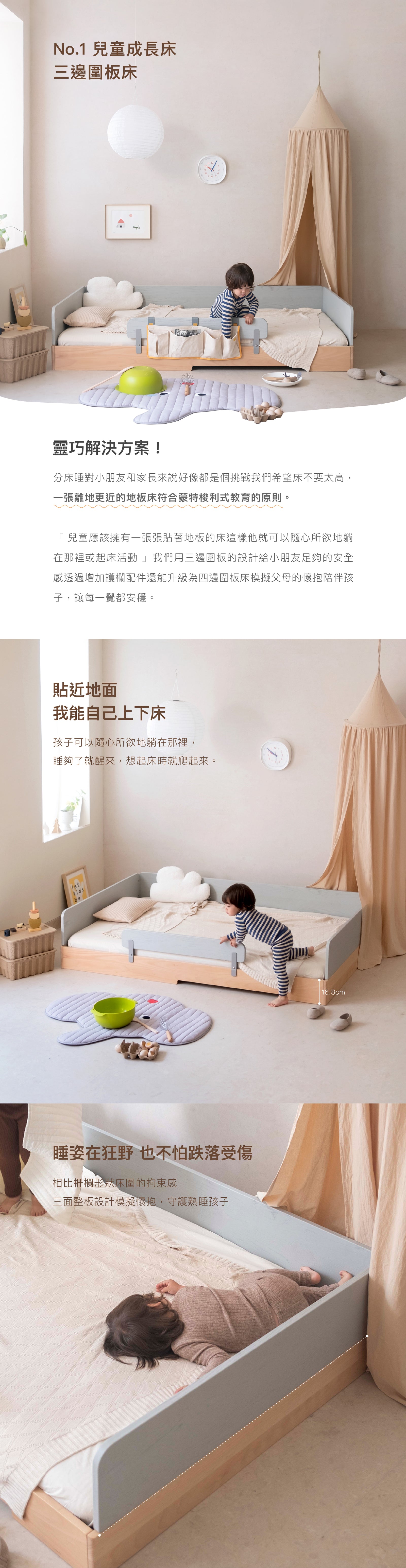 甜蜜的夢和無限的可能性:三邊圍板多變的蒙特梭利床