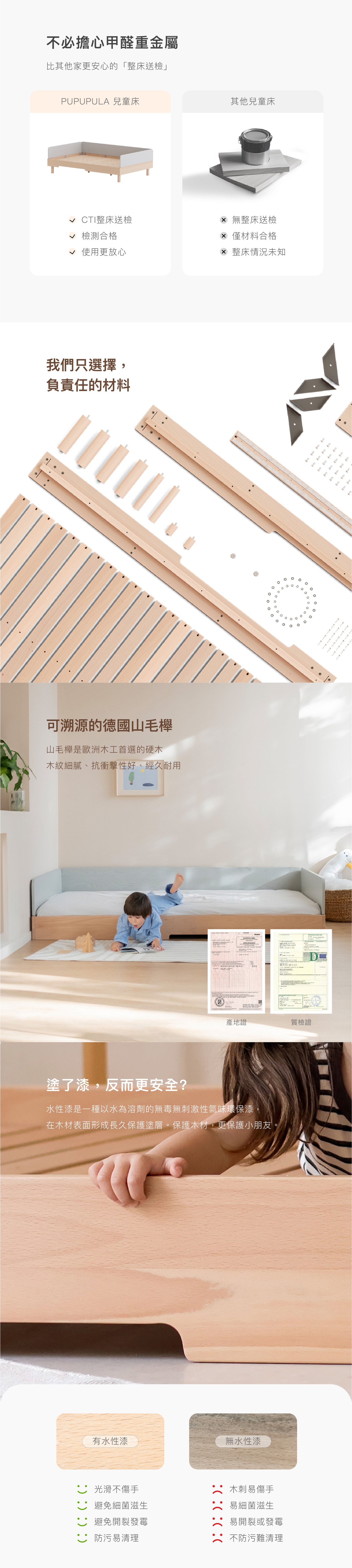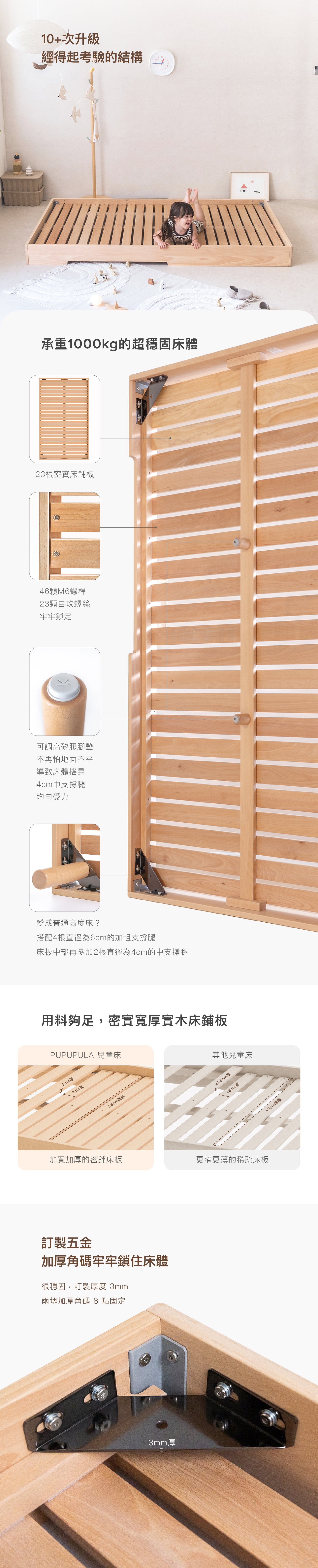 • 德國山毛櫸實木床板:提供美麗、耐衝擊的木材