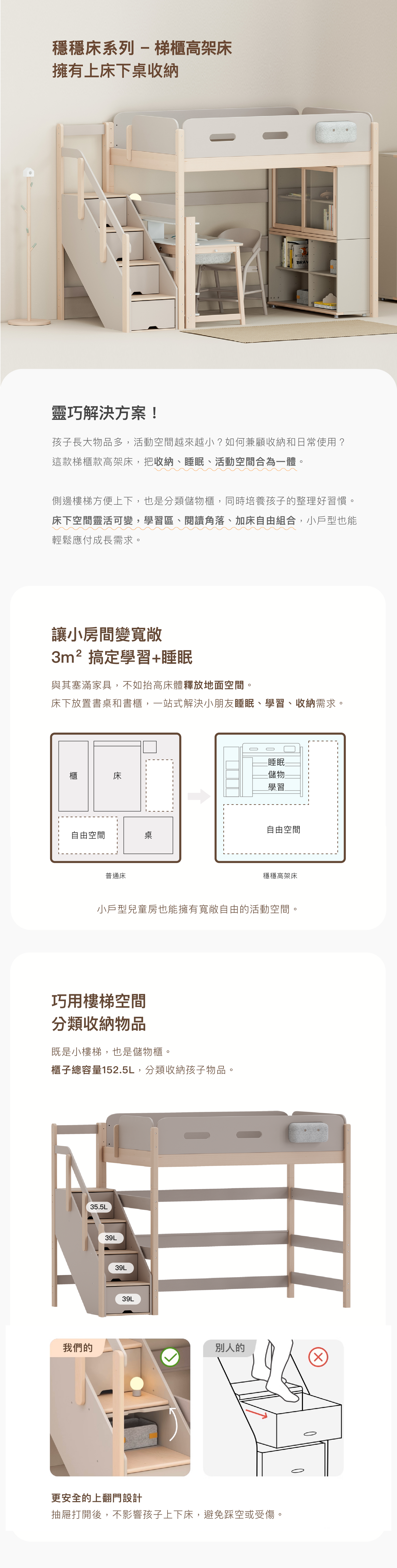 穩穩床系列-兒童梯櫃高架床:讓一張床發揮兩倍以上的價值
