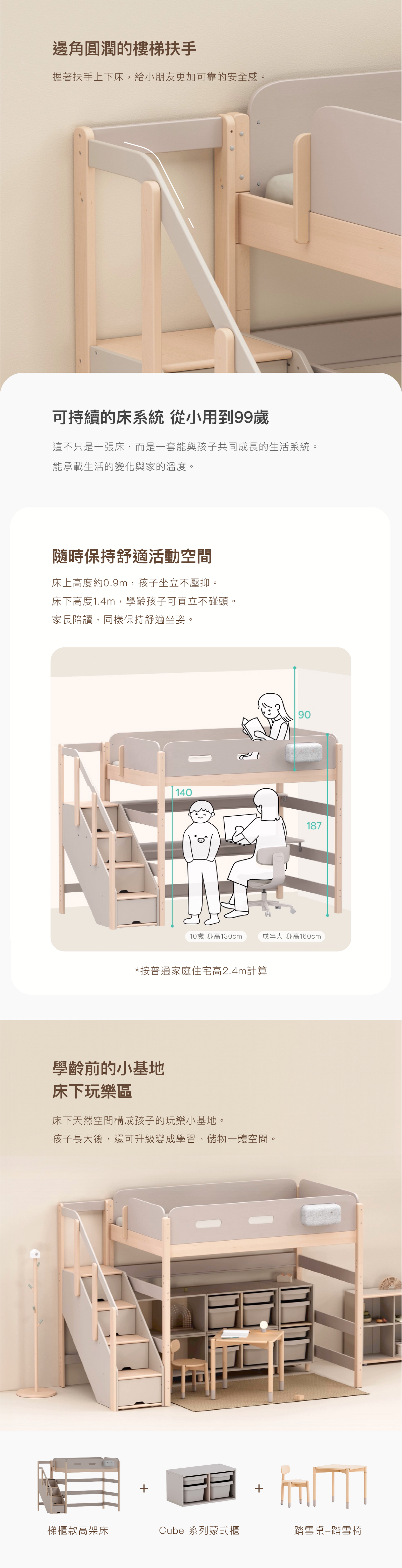 穩穩床系列-兒童梯櫃高架床:讓一張床發揮兩倍以上的價值