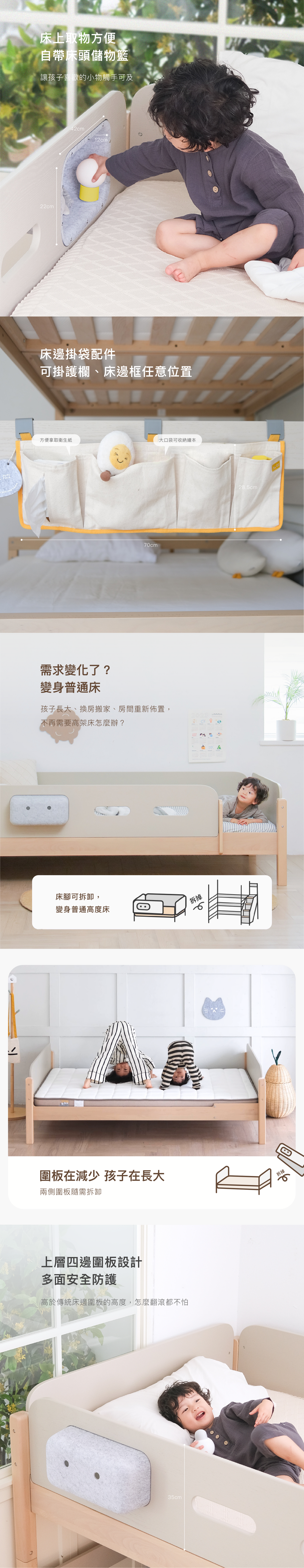 不論是放書桌、放櫃子,還是鋪上地墊當秘密基地,依孩子年齡與生活習慣彈性調整,一張床,陪伴孩子的每一段成長歷程。